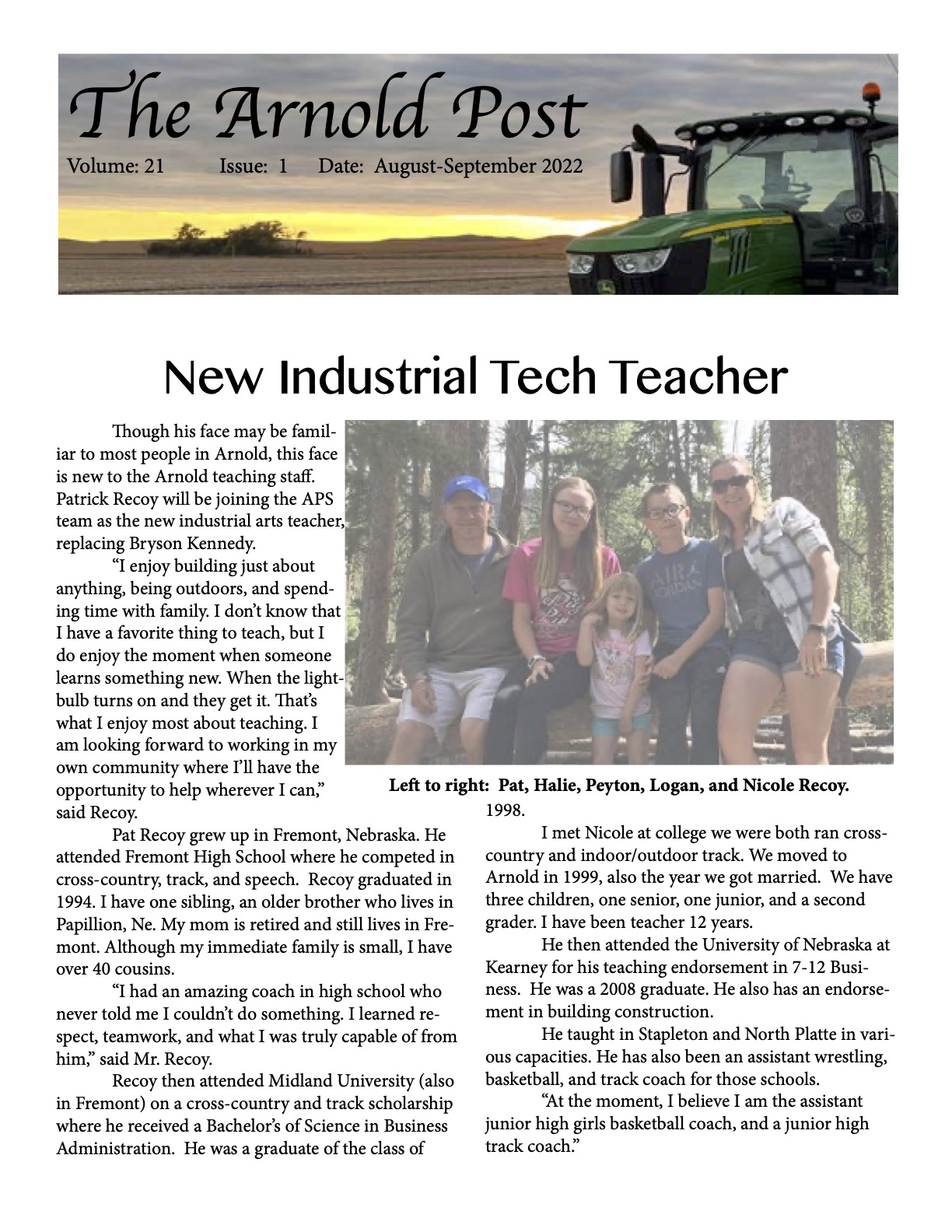 The Aug-Sept2022, the sixth newsletter of the 2022-2023 school year, is being mailed this week.