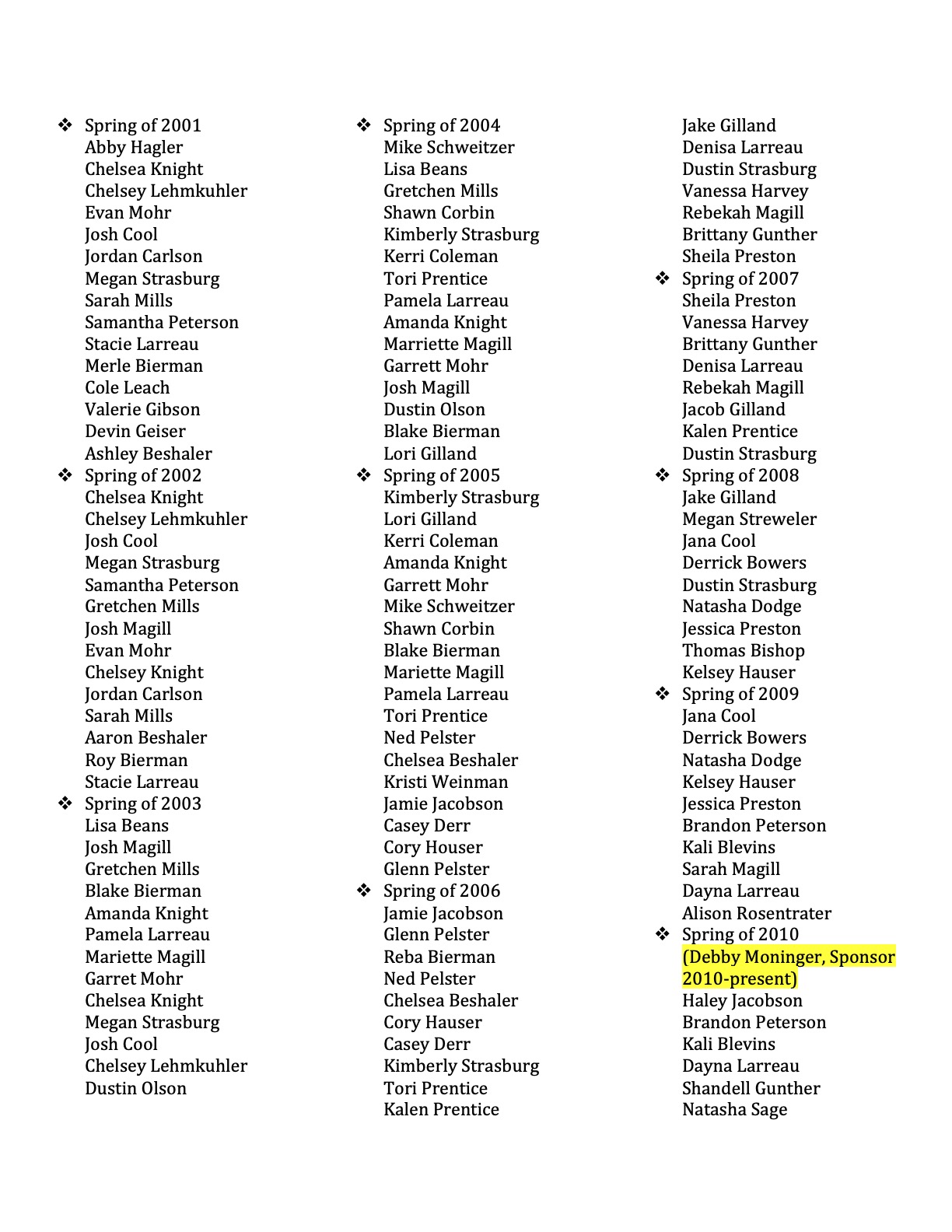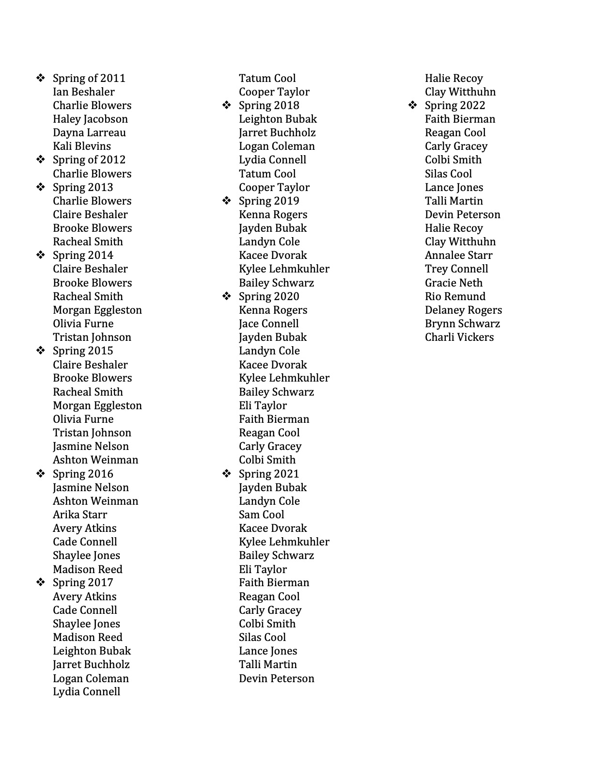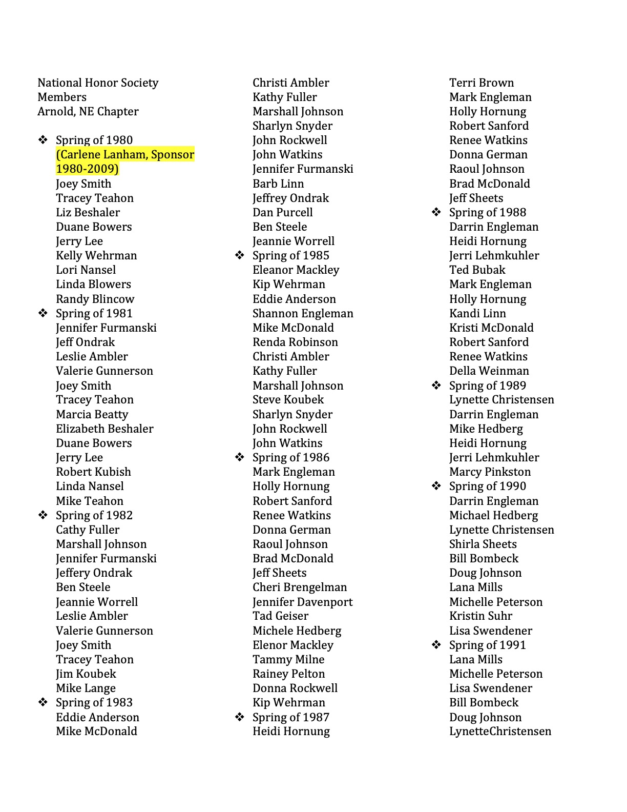 - Secretary: Annalee Starr